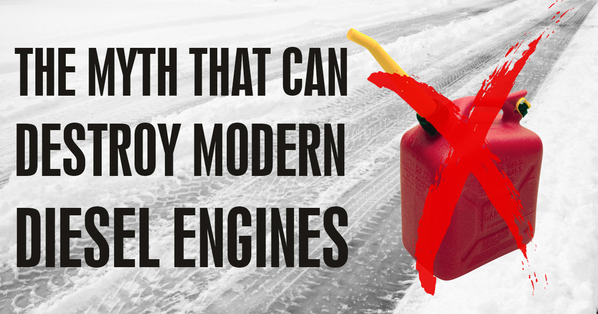 People often think adding gasoline will “thin” diesel and lower its gel point. In reality, gasoline’s lower flash point turns your diesel engine into a ticking time bomb. Adding just 1% gasoline drops the flash point of your fuel by around 65 °F. Modern diesel engines are tuned to ignite at a specific temperature and pressure, and lowering the flash point causes the fuel to ignite too early. Early ignition is a quick way to destroy your diesel engine and leads to expensive repairs. Beyond that, gasoline offers little or no lubrication and introduces other problems:
